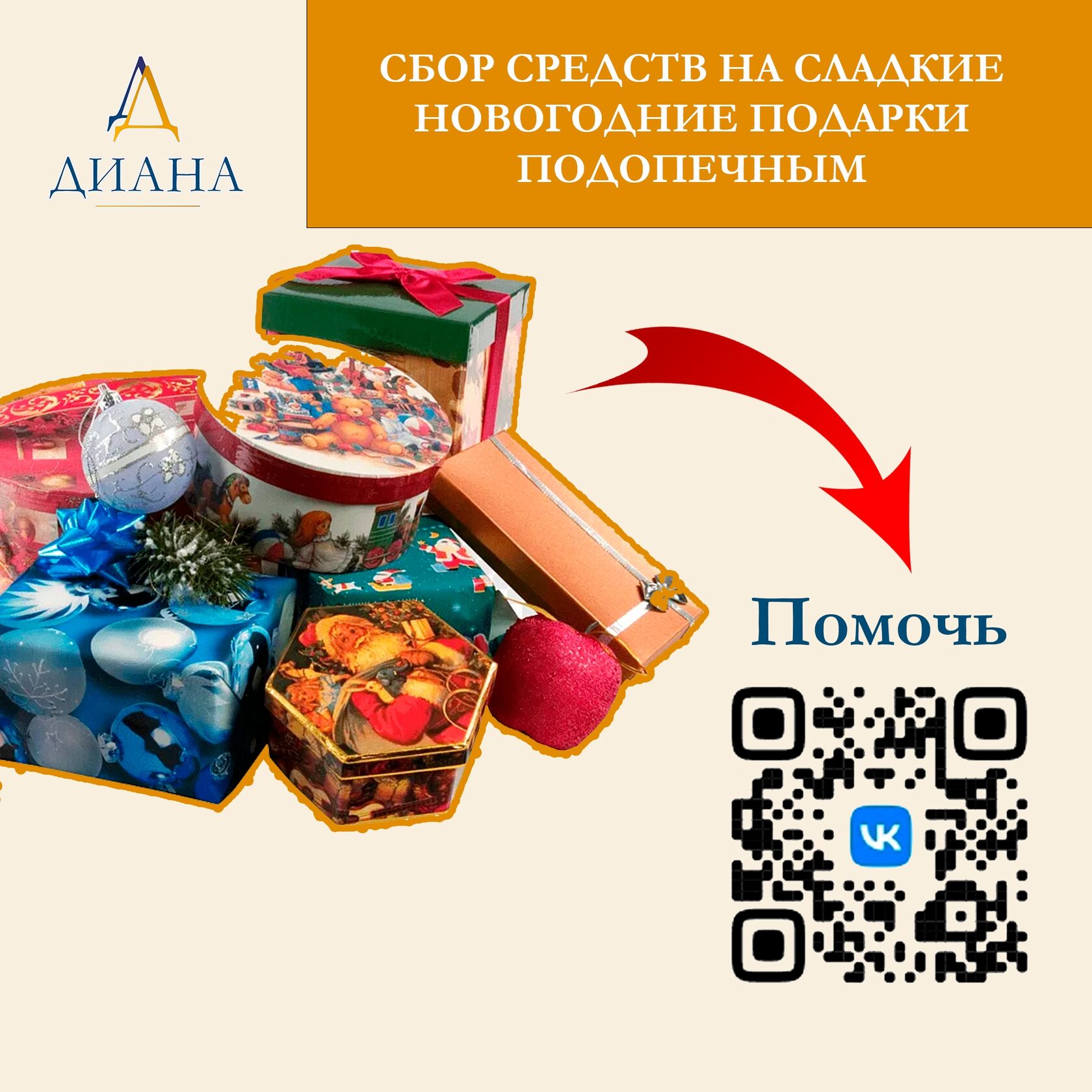 Центр «Диана» начал традиционный сбор средств на новогодние сладкие подарки. Нам необходимо подготовить 1300 наборов, чтобы поздравить всех наших подопечных с праздником.
